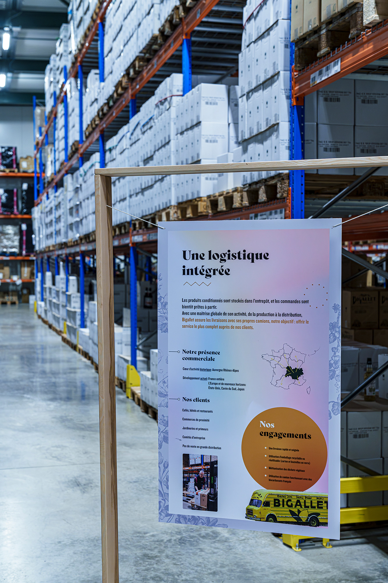 Un travail de graphisme et de mise en forme de l'information qui s'accorde avec le talent de l'agence Céleste et leur capacité à mettre en valeur les espaces, le mobilier, de nombreux objets nichés, documents d'archives et portraits de la sphère Bigallet, ingrédients, outils, ...